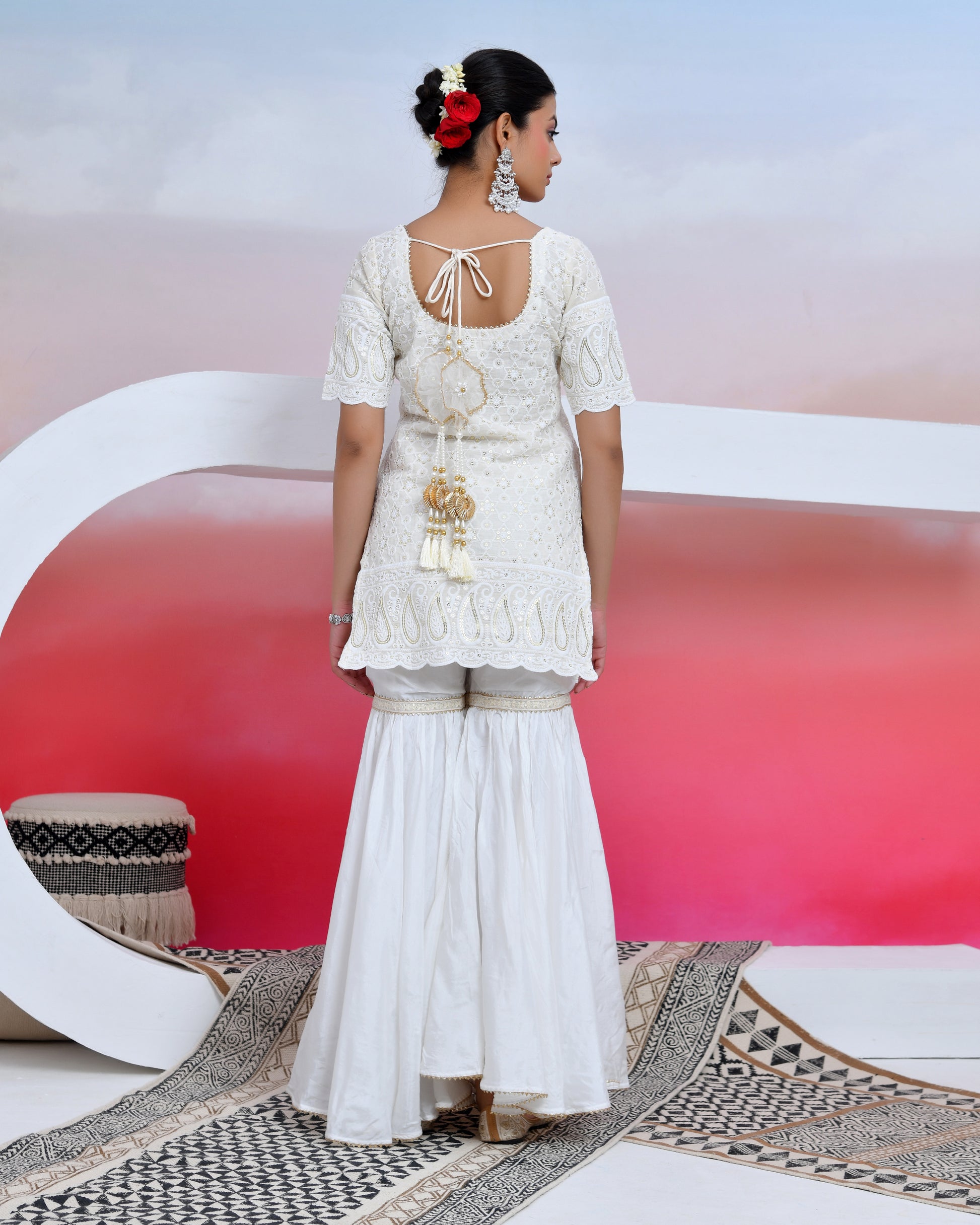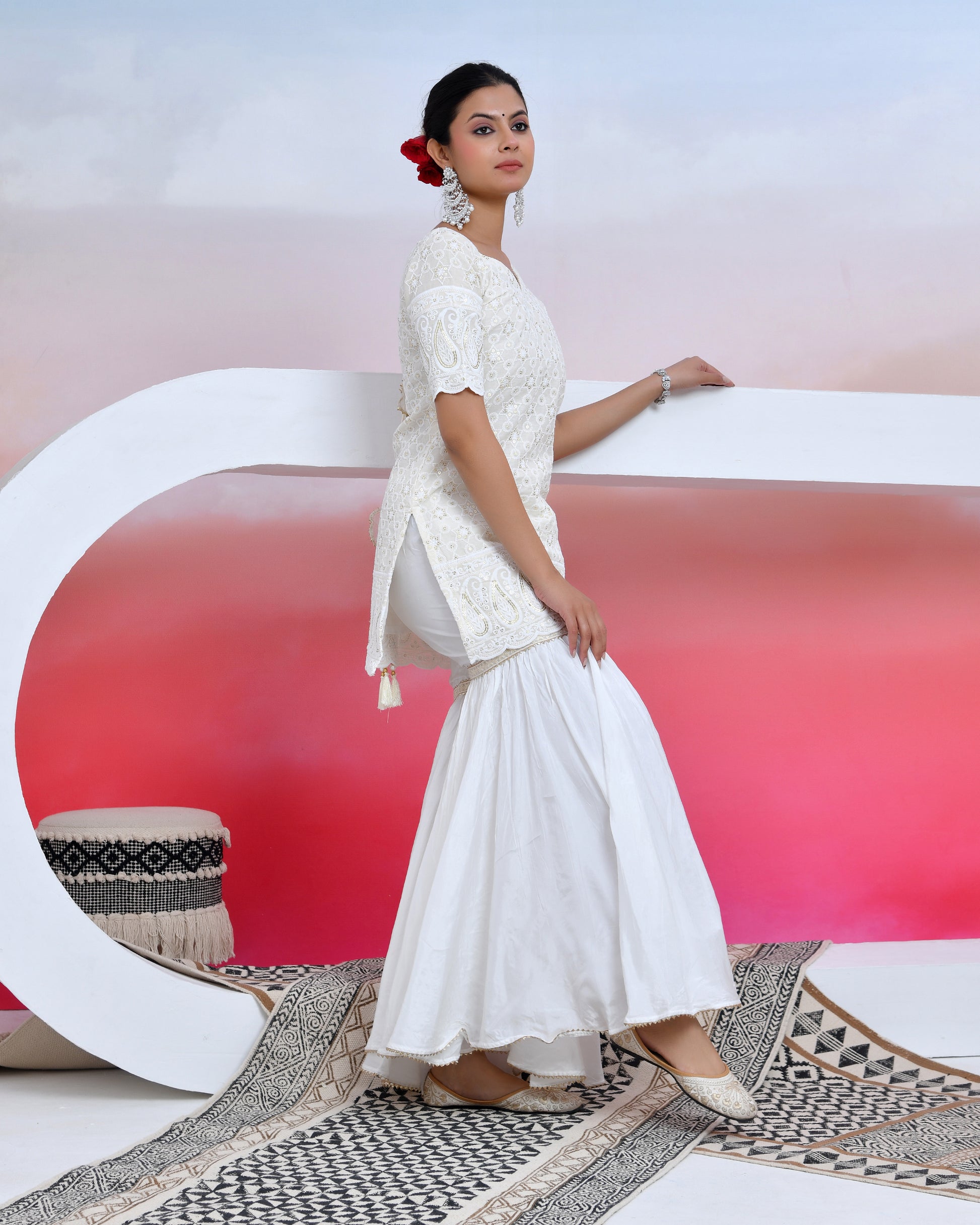 Kurta Style | Chikankari Short Kurta with Beeja Detailing |