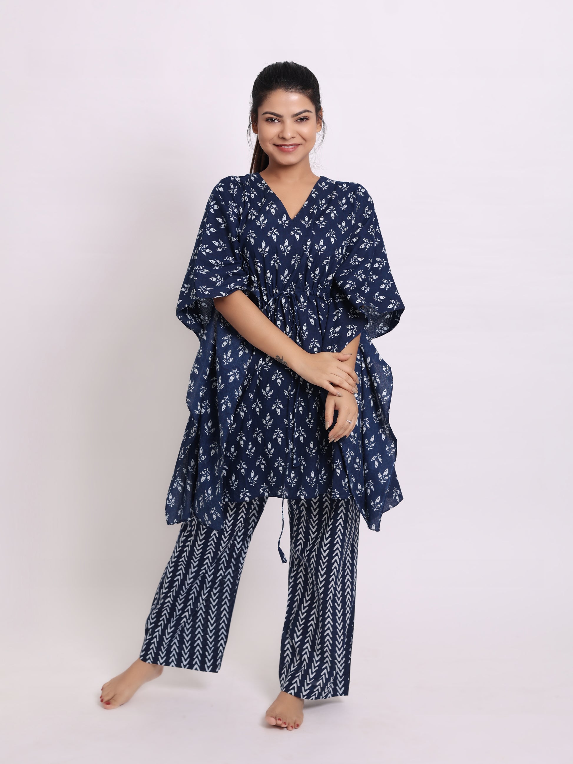 Find the perfect match for your summer vibe with our cotton kaftan pajama set! giving you a soft and cozy feel against your skin. this kaftan set is fit is absolutely flawless, accentuating your figure in all the right ways.