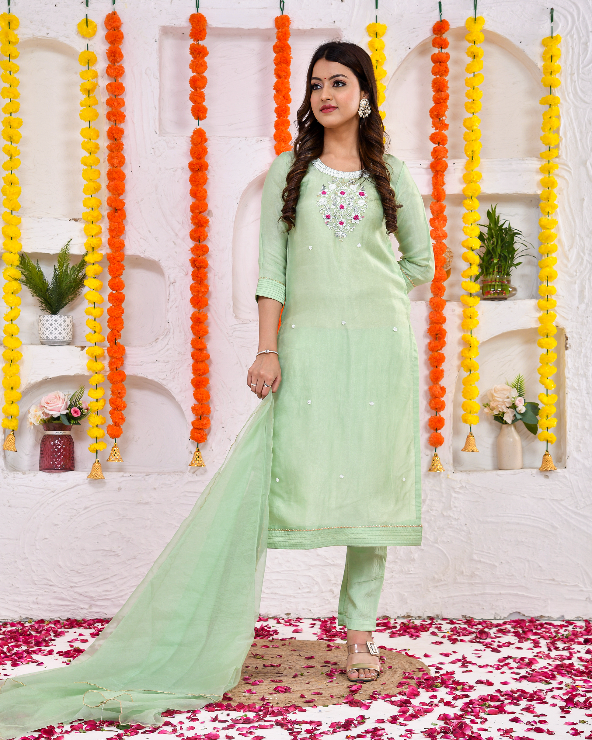 Khaas Green Silk Suit Set With Duppta