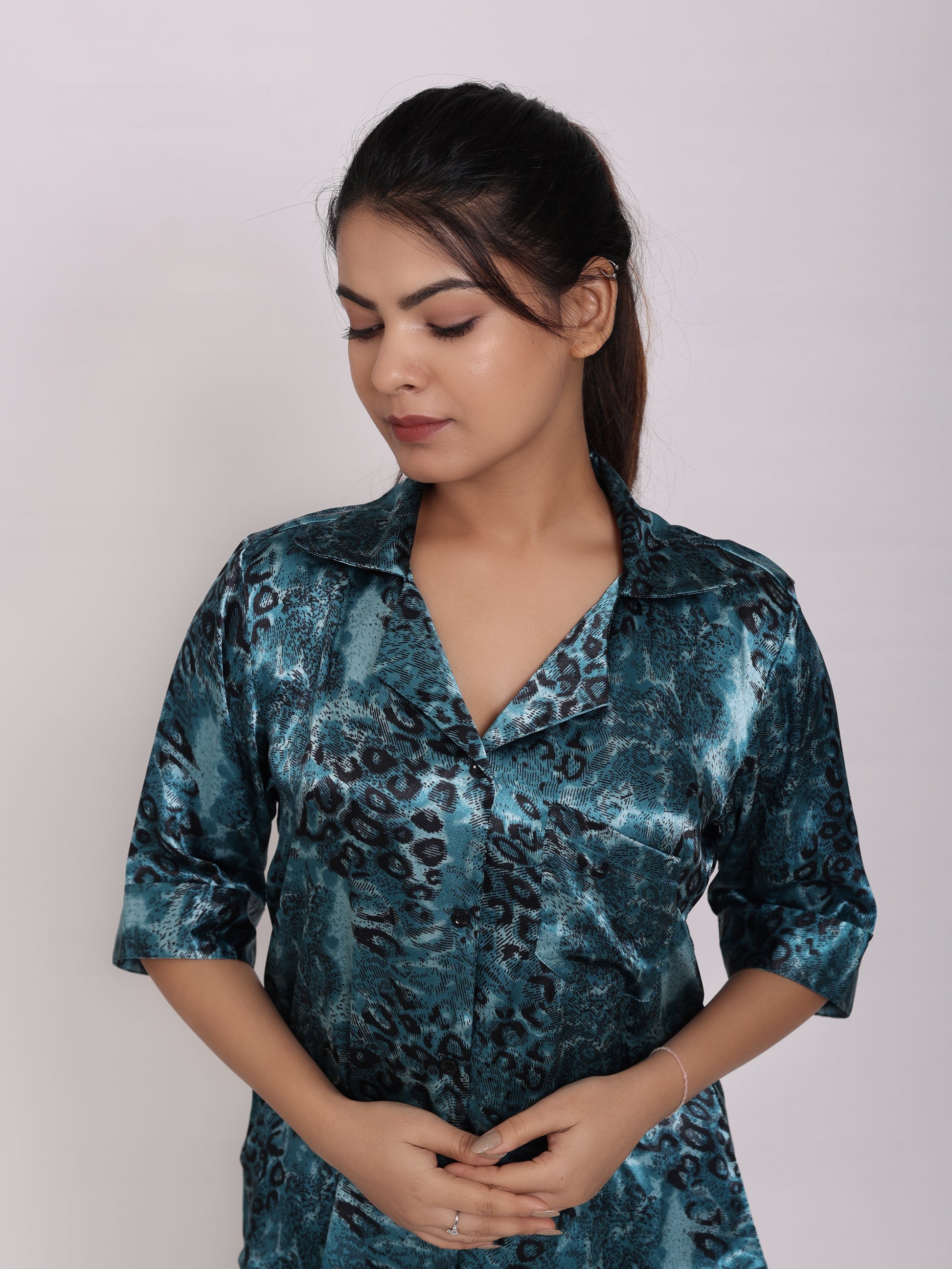 introducing our ultra soft satin nightsuit this one is crafted with the the softest satin fabric to leave you feeling light and airy.This two-piece set features a top and bottom with a single side pocket and The top is a gorgeous short sleeves and lapel collar will further emphasise your looks.Stay cosy and comfortable throughout the night with our ultra soft satin night suits.It is a stylish and comfortable night suit.